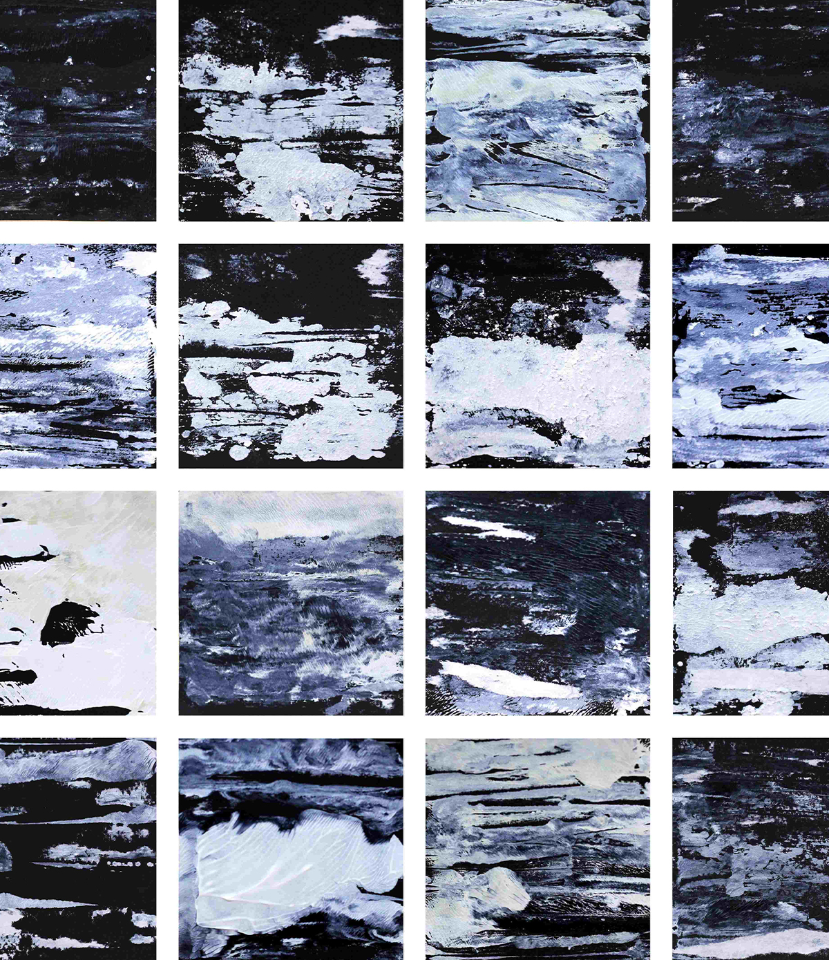 Des peintures réalisées à l’aquarelle, à l’acrylique et à l’huile principalement sur toile ou sur papier.